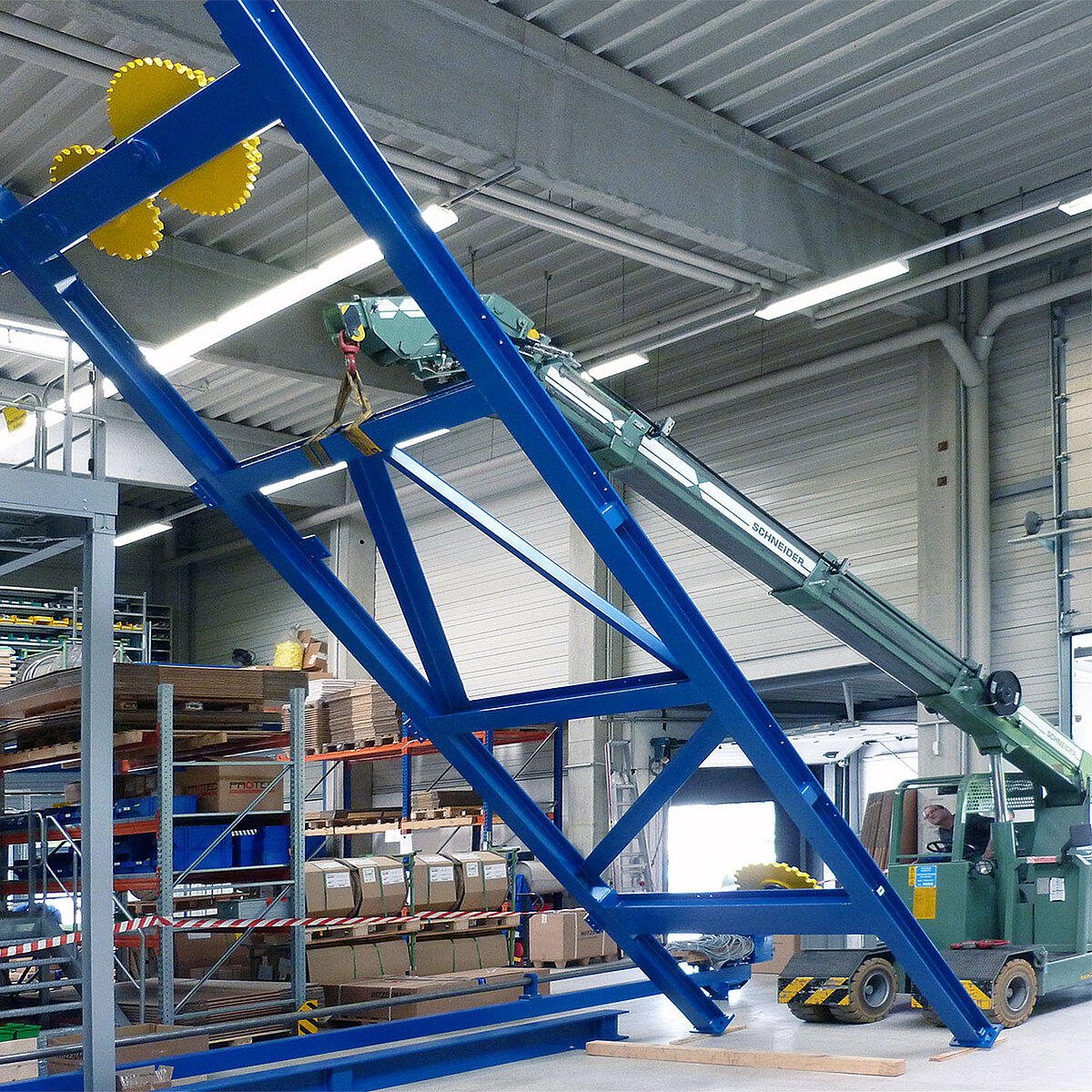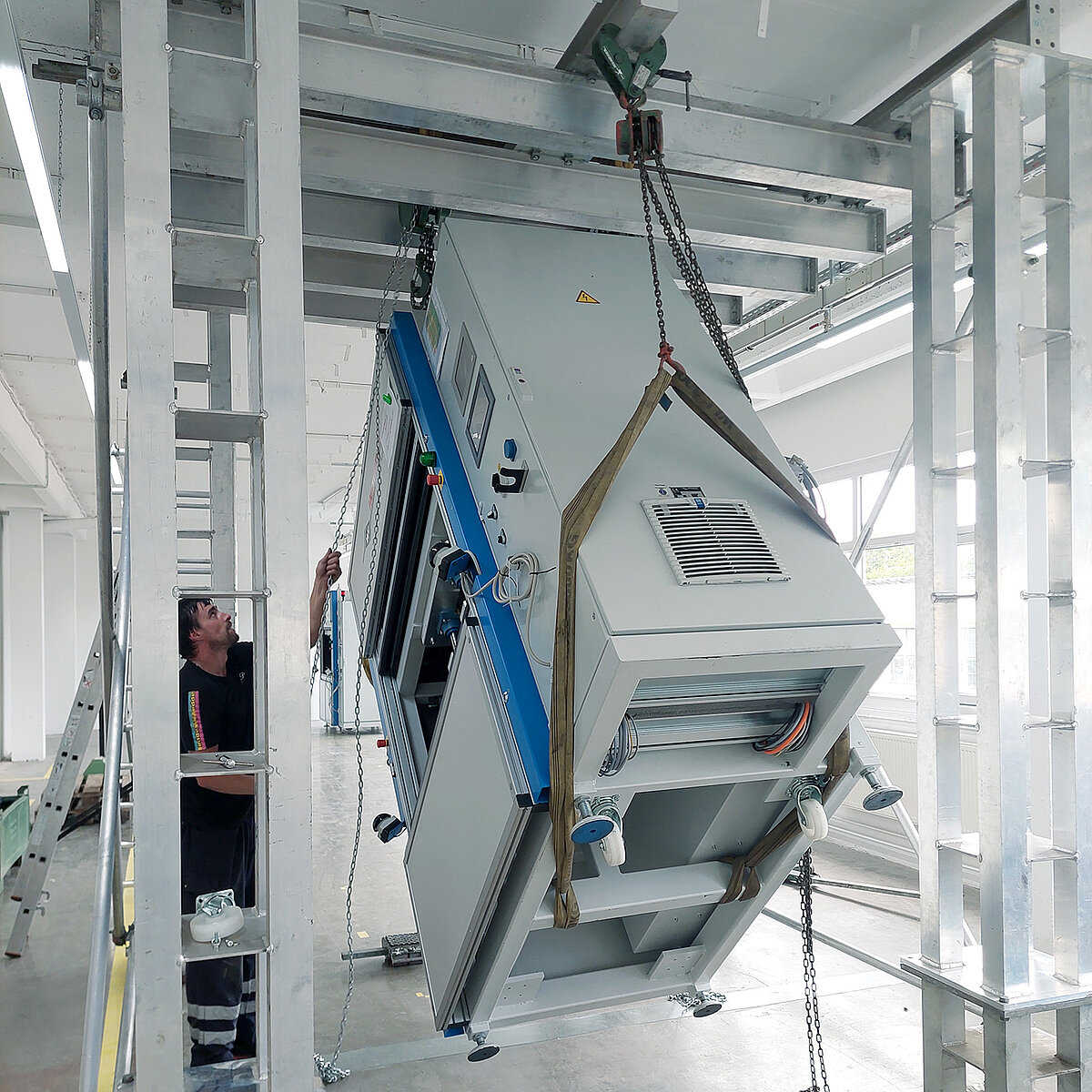 Mit unserer umfassenden Erfahrung in Maschinenumsetzungen bieten wir Ihnen einen kompletten Service: vom Entladen und Einbringen über die Aufstellung bis hin zur Inbetriebnahme Ihrer Maschinen und Anlagen.